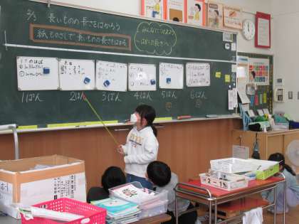 2月3日(金) 2年生 算数(1) 公開日 2023/02/03 更新日 2023/02/03 2023年度 2年生 算数では、新しい単位「メートル」を学習しました。テープを使って、身近にあるものの長さを測りました。