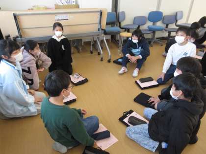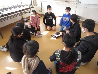 スキー学習に向けて、しおりを使って当日の動きを確認しました。また、班ごとにリーダーなどの役割を決めました。当日に帽子や手袋など、忘れ物がないよう確認をお願いします。