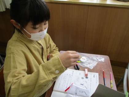 磁石の学習をしています。 教室の色々な場所にくっつくか確かめています。
