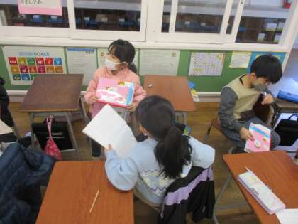 「かばん」の中に「かば」がいる。といった言葉が隠れている文を作り、友達に問題を出す活動をしました。