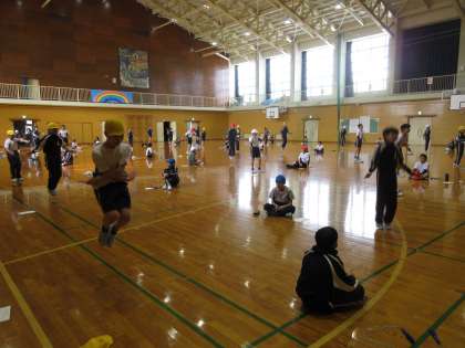なわとびオリンピックでは、個人の縄跳びと大縄の8の字跳びを行いました。個人の縄跳びでは、それぞれが練習を重ねた成果を一生懸命発揮していました。