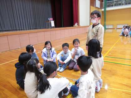 チームのみんなとかけ声を合わせたり、「練習するよ」と声をかけたりしながら、8の字跳びの練習をしています。「2分間で○回跳べたよ」と、回を重ねるごとに回数があがってきました。活動の後には、輪になって振り返りをしています。