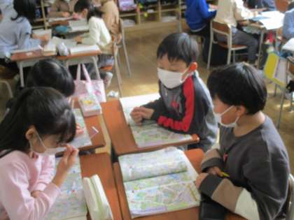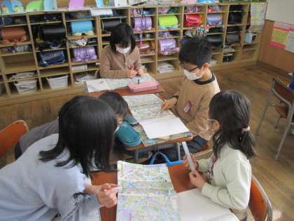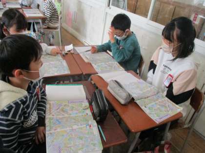 グループの友達と、昔と今のまちの変化について意見を交換しました。
