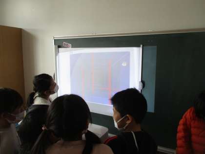 他の子供も見られるようにプロジェクターにつなぎ、応援やアドバイスをしながら楽しんでいました。
