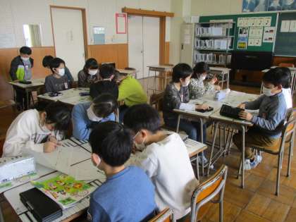2月21日(火) 3年生 音楽 公開日 2023/02/22 更新日 2023/02/22 2023年度 3年生 グループ学習で、音作りに取り組んでいます。魔法使いのイメージを話し合ったり、リズムを考えたりしました。