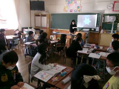 2月21日(火) 3年生 国語 公開日 2023/02/22 更新日 2023/02/22 2023年度 3年生 算数の学習では、三角形や角について学習しています。 たくさんの三角形を敷き詰めることで、大小様々な三角形を見つけていました。