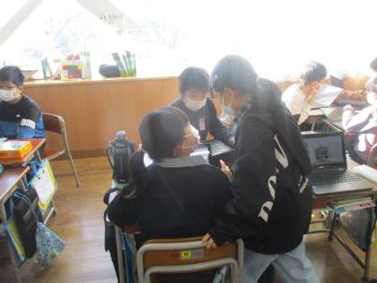 2月22日(水) 3年生 国語1 公開日 2023/02/22 更新日 2023/02/22 2023年度 3年生 2年生に伝えるプロジェクトの様子です。 各グループで協力しながらスライド作りをしています。