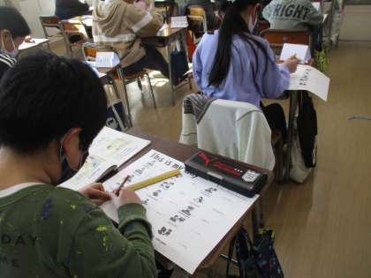 動作と言葉を結び付けて覚えたり、小さな冊子にして自分の一日の生活を英語で書いたりしました。
