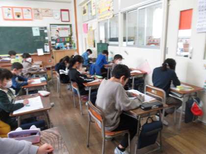 3学期の学習のまとめに入り、学期のたしかめのテストに取り組んでいます。