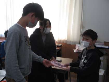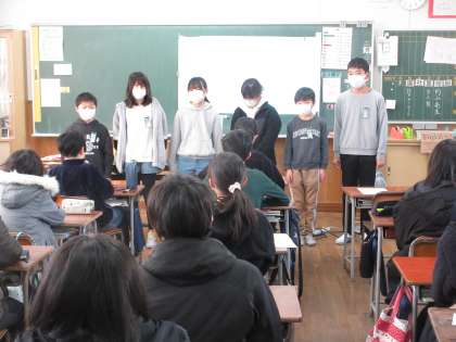 卒業を祝う週間2日目。今日は6年生に卒業を祝う会の招待状を届けに行きました。在校生みんなで卒業をお祝いします。また、お昼の放送では、1〜3年生に学習した音楽を当てるクイズを放送しました。