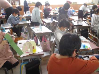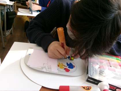 くるくるランドの製作中です。四季のうつりかわりや列車に乗った旅など、回転の仕組みを生かしたテーマを選んでいてすてきです。