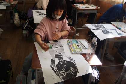3月1日(水) 2年生 版画 公開日 2023/03/01 更新日 2023/03/01 2023年度 2年生 今年初めての版画をしました。上手く刷れている版画に「おー!すごい!!」と嬉しそうにしていました。