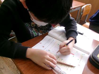 算数では、棒グラフや表に表すよさについて学習をしています。今日は、棒グラフを書いてみました。たくさんのデータを整理する中で、コンピュータの有用性にも気付いています。