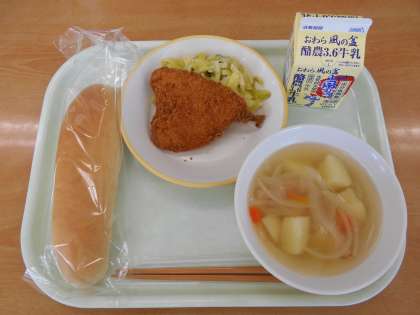 3月6日(月)今日の献立は、コッペパン・牛乳・あじフライ・アスパラサラダ・ポテトスープでした。アスパラガスは、5月〜6月がおいしい時期です。現在では、ハウス栽培などで、1年中出回るようになりました。アスパラガスは、体を元気にしてくれる、優れものです。名前の由来ともなったアスパラギン酸がたっぷり含まれ、疲労回復、スタミナアップにもパワーを発揮します。昼休みは、元気よく外で遊んでいる児童が多かったです。今日もおいしくいただきました。