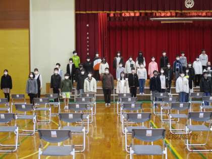 卒業まで9日となり、体育館での練習も行っています。証書の受け取りや呼びかけの位置の確認など、真剣に取り組んでいます。