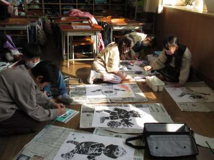 3月8日(水) 2年生 図工(1) 公開日 2023/03/08 更新日 2023/03/08 2023年度 2年生 図工では、版画を刷ったものに色や模様をつけて、仕上げをしました。躍動感のある作品ができました。