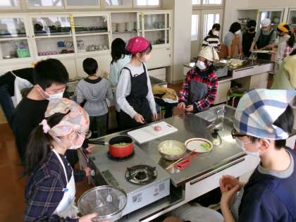 じゃがいもの皮むきやたまねぎのカットなど、グループで役割分担し、協力して調理実習を進めました。いつも以上にいきいきと活動する子どもたちの顔が見ることができました。