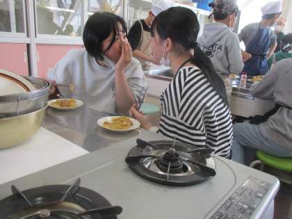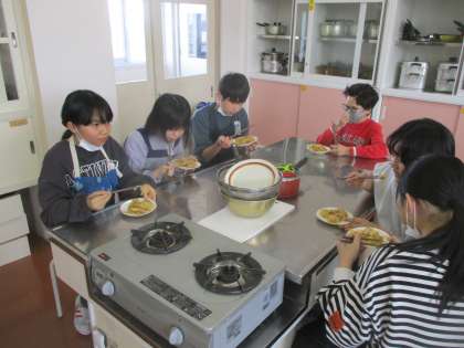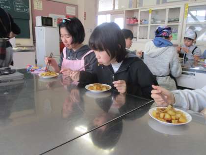 しっかり炒めてジャーマンポテト完成です。自分たちでつくった料理をみんなでおいしくいただきました。どの子も笑顔になっていました。