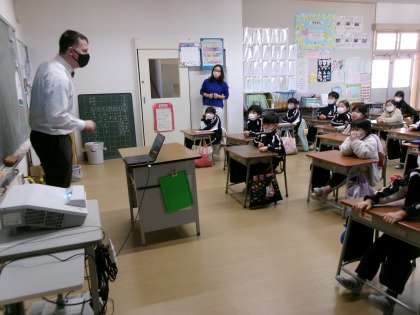 月曜日にALTの先生と外国語の先生に来て頂き、外国語と触れあいました。