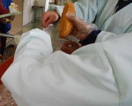 3月13日(月)今日は、大久保小学校だけのスペシャルメニューです。揚げパン・牛乳・焼きそば・ウインナー・ブロッコリーサラダ・ポケットチーズでした。初めての揚げパンは、とても好評でした。給食当番は二人で協力し、揚げパンを袋詰めしていました。焼きそばも大盛りでしたが、ほとんど完食していました。おいしい揚げパンをつくってくださった調理員さんに感謝です。今日もおいしくいただきました。