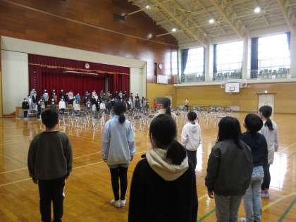 明日の卒業式の予行練習に向けて、6年生と式の流れや門出の言葉を練習しました。6年生と過ごすのも残り数日となりました。残りの日を大切に、多くのことを学んでほしいなと思います。
