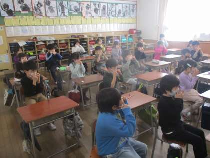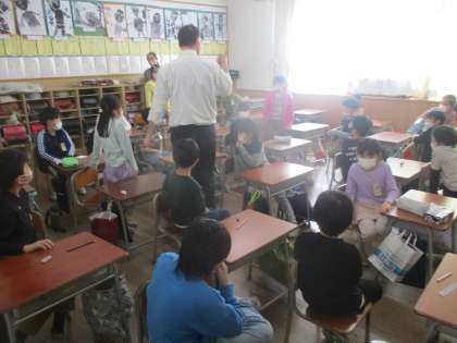 子供達は、ALTの先生と初めての外国語の授業に取り組みました。歌を歌ったり、体を動かしたりして、授業をとても楽しんでいました。