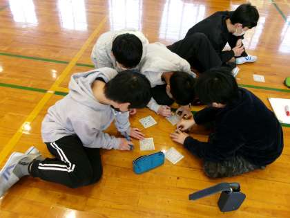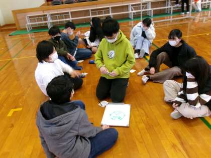 伝言ゲームとビンゴを楽しむ子どもたちの様子です。