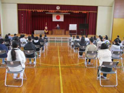 修了式の中で、校長先生からお話がありました。終了式と修了式の違いや、創造と協働について説明していただきました。6年生は、うなずきながら聞いていました。大切にしてほしい言葉を胸に明日の卒業式に臨んでほしいです。