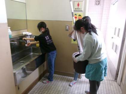 玄関や廊下なども丁寧に清掃を行っていました。