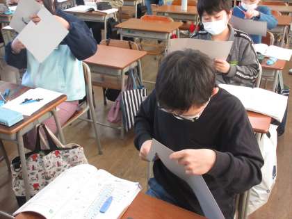 3月20日(月) 5年生 算数 公開日 2023/03/20 更新日 2023/03/20 2023年度 5年生 算数では、角柱と円柱を学習しています。展開図を工作用紙に書き、実際に模型を作ってその形になるか確かめました。