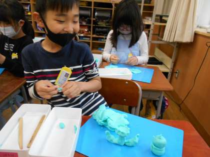 4月12日(水)2年生 図画工作「にぎにぎ ねん土」