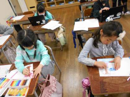 パソコンの画像を見たり、自分が見つけた動植物を思い浮かべてたりして描きました。