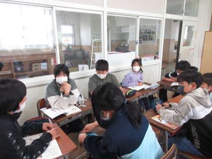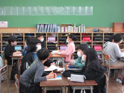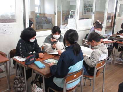 4月18日(火) 6年生 国語 公開日 2023/04/18 更新日 2023/04/18 2023年度 6年生 国語では、つないで、つないで、一つのお話を学習しました。最初と最後の一文が決まっているお話を友達と協力してつくりあげました。グループで話し合っていくうちに、自然と笑顔があふれていました。