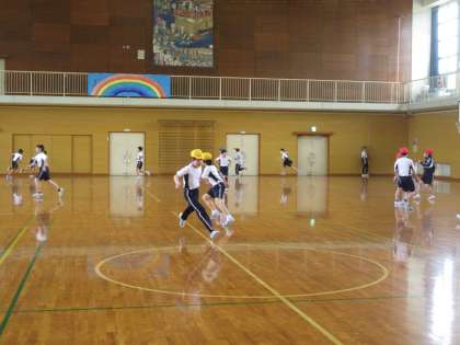 4月19日(水) 6年生 体育 公開日 2023/04/19 更新日 2023/04/19 2023年度 6年生 体育では、体ほぐしの運動を行っています。今日は、体育館の線を使って鬼ごっこをしたり、変形ダッシュをしたりして体を動かしました。