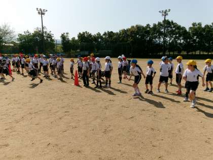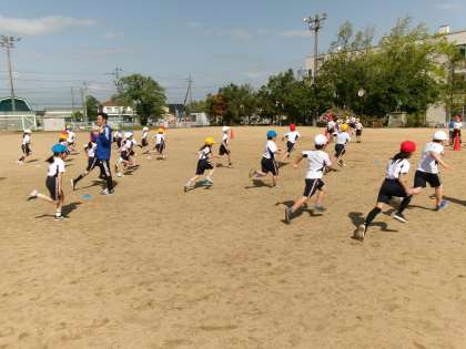 今日は、速く走るコツを伝授してもらいました。手を素早く動かして走る練習をしました。大久保カップも近づいてきているので、子供たちも気合いが入っています。