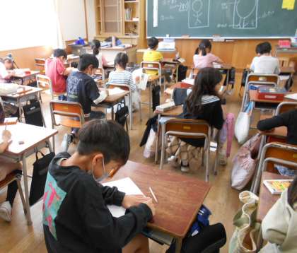 5月1日(月) 2年生 図画工作 公開日 2023/05/01 更新日 2023/05/01 2023年度 2年生 学年目標「ジャンプ」から自分がジャンプしている姿を描きました。 実際にジャンプしてみて、体のどこが曲がるのか、腕はどうなっているのかなど、くわしく描くようにしました。