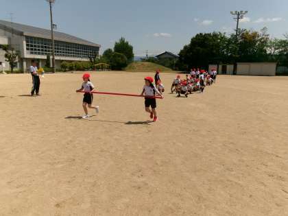 4年生さんと合同で、大久保ハリケーンの練習をしました。実際に走ったり、4年生さんを応援したりしました。2人で協力する姿が見られ、本番が楽しみです。