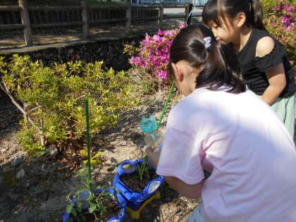 5月11日(木) 2年生 朝の水やり 公開日 2023/05/12 更新日 2023/05/12 2023年度 2年生 朝の身支度が終わった子供から、水やりをしに外に出ました。 「早く食べたいな。」とお世話を頑張る子供たちでした。