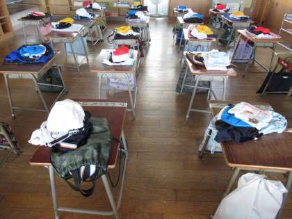 グラウンドのテントに自分の椅子を運んで座ります。そのため、5限目に、教室の椅子を2階から1階まで、持って行きました。また、登校後すぐに、着替えられるよう、机に着替えをセットして帰りました。明日が楽しみです。