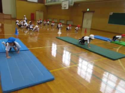 楽しくマットあそびに取り組みました。「たのしかったあ」「でも、つかれたあ」という声が聞かれました。がんばりました。