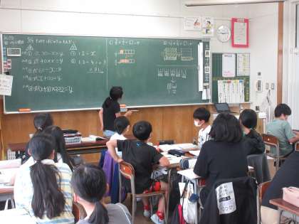 5月19日(金) 6年生 算数 公開日 2023/05/19 更新日 2023/05/19 2023年度 6年生 算数では、少人数で学習が進んでいます。それぞれのクラスで、真剣に授業に取り組む様子が見られました。写真は、子供たちが考えを説明している様子です。