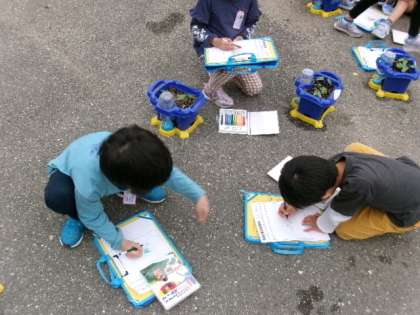 「ハートの形だ。」や「触ったらふわふわしててかわいい」と五感を使って観察していました。