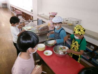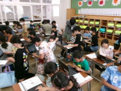 給食当番を頑張ったり、6年生のお兄さんお姉さんにパソコンの使い方を習って練習したりしました。