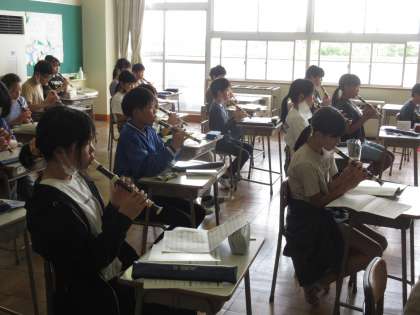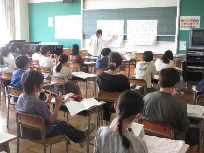 音楽では、リコーダーを使っての合奏を行っています。シのフラットなど、指の動かし方が難しい音にも挑戦しています。すらすら吹けるよう、家でも練習を続けましょう!