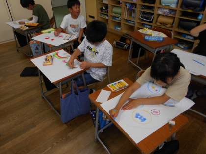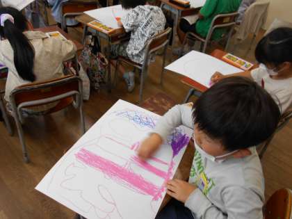 想像を膨らませて、たまごの模様を描きました。細かいところまで丁寧に塗ったり、水彩を使って色を工夫したりしていました。