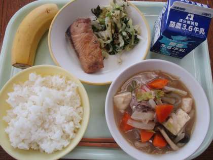 6月6日今日の献立は、ごはん、牛乳、ふくらぎの西京焼き、昆布和え、肉豆腐、バナナです。