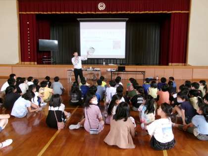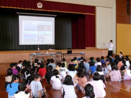 今日は、富山市環境センターの方々に来ていただき、富山湾の現状や海洋ごみの影響、環境に優しい3Rの取り組みなどについてお話を聞きました。