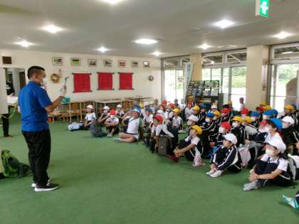 今日は、待ちに待った野外学習に行ってきました。大久保小学校からバスに乗って、呉羽青少年自然の家に行きました。