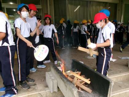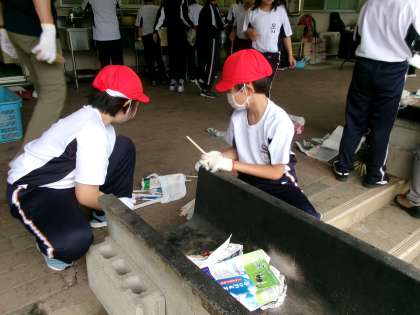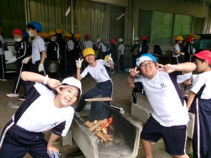 続きです。班のみんなで協力して、野外炊飯に取り組んでいます。