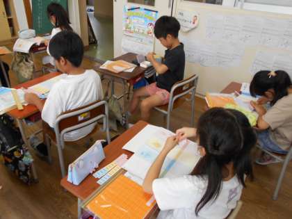 一・十・百の位に何枚カードがあるか数えて、少しずつ数を素早く言ったり書いたりできるようになってきました。